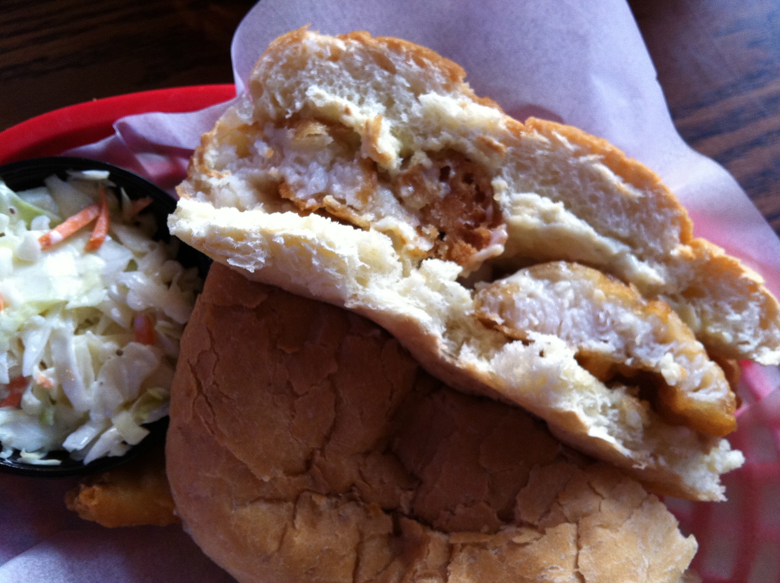 I do have to mention the coleslaw, which I picked at but didn’t finish. It was too vinegar-y, but aside from that, there was some other flavor that wasn’t doing anything for me. You’re hearing this, admittedly, from one picky coleslaw connoisseur. (Give it to me creamy and sweet!)