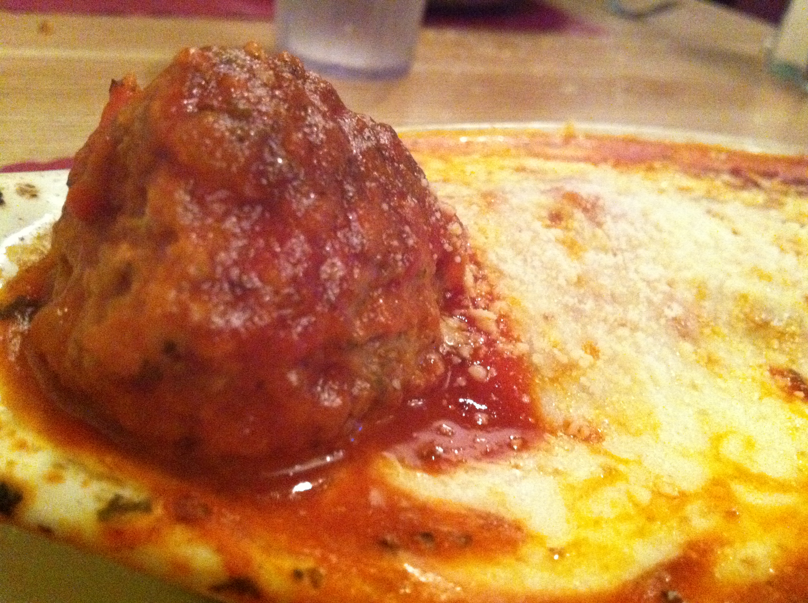 I had to get this shot so you can begin to appreciate the sheer size of this meatball. I could have eaten a whole bowl of just meatballs, sauce and melted mozzarella – which is actually what I order sometimes at Luigi’s when I’m trying to cut carbs.