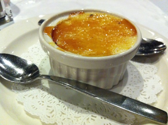 For dessert we agreed on creme brulee, which we shared.  What a delightful ending to a wonderful meal: light, rich, smooth, and not too sweet.  Creme brulee is always an awesome treat, and this one didn’t disappoint.