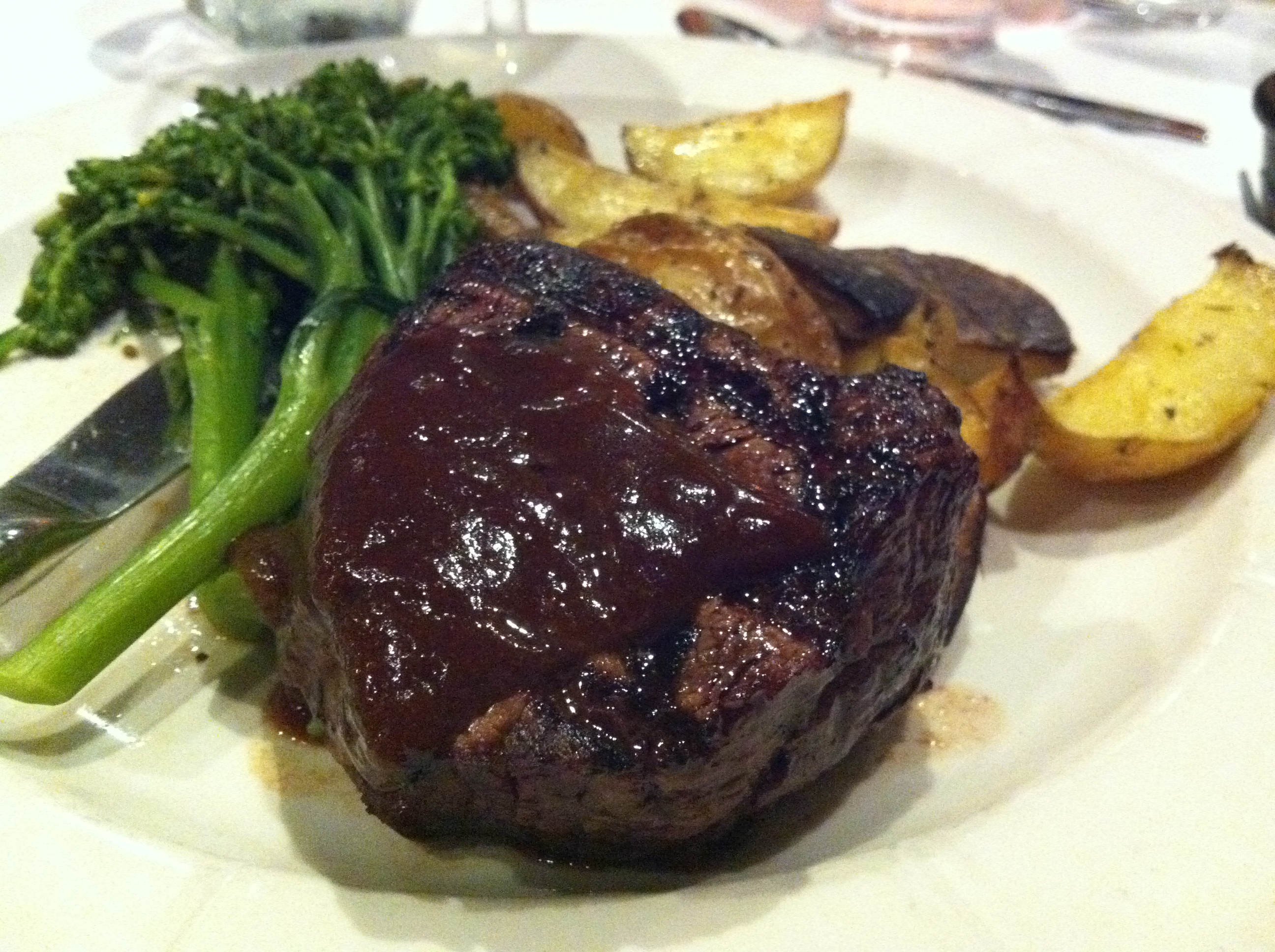I ordered my second choice, which was grilled fillet with house steak sauce, roasted yukon gold potatoes, and broccolini.  The steak was very good, although certainly not the best around.  But then again, Bricco isn’t a steakhouse.  Their strength is really in pasta, pizza, and salads.  With that said, the steak was delicious and totally enjoyable with the homemade steak sauce.  I would probably order it again.