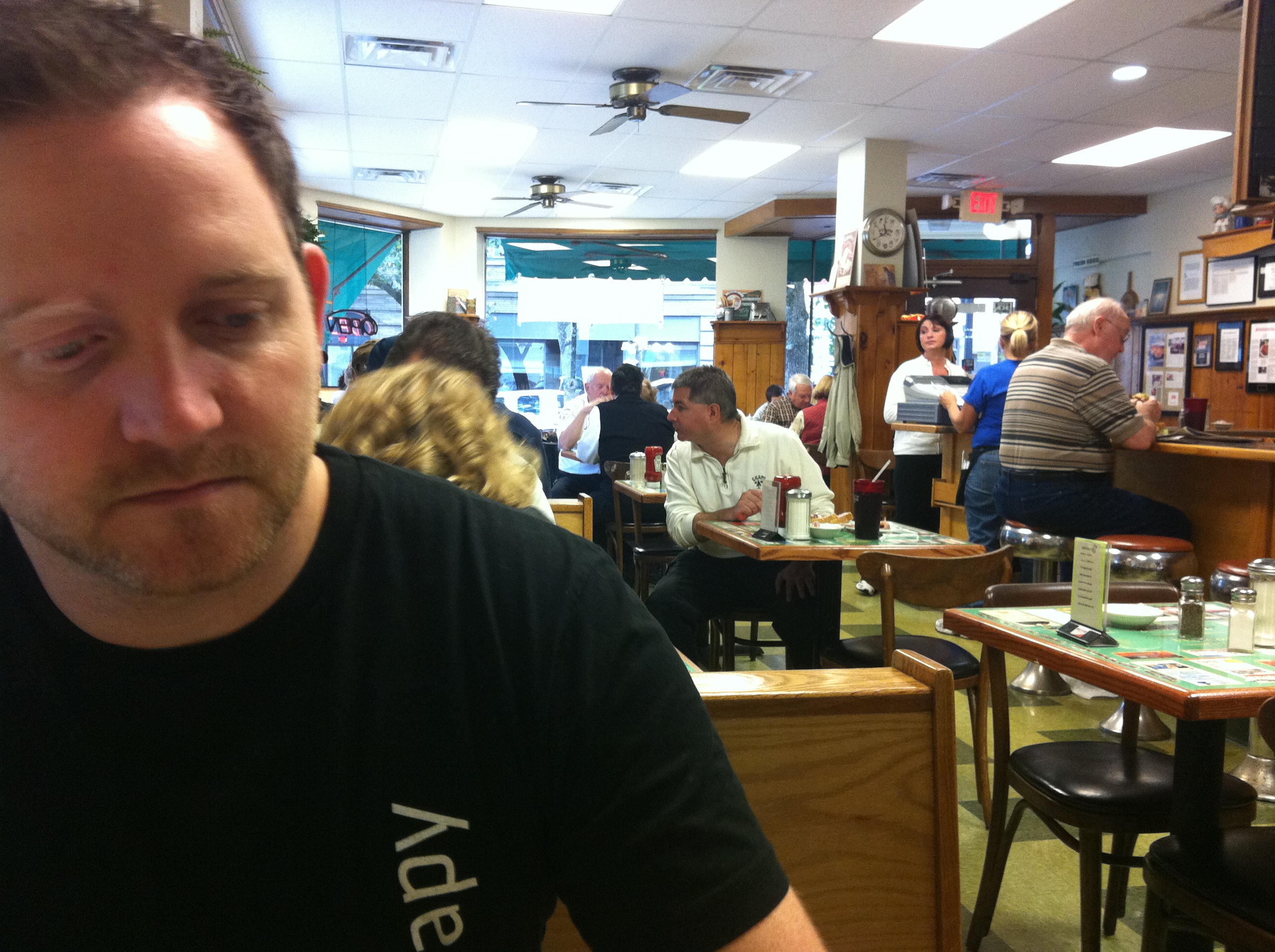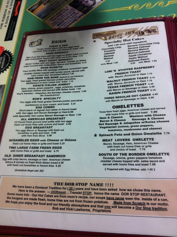 After an overnight jaunt to Pittsburgh, we were looking for a place to have breakfast, which at this point had to be pretty great to keep up with the winning food streak we were on over the last two days. If you don’t know what I’m referring to, obviously you didn’t read my last post about Alma Pan-Latin Kitchen. So with breakfast on the brain, I hopped onto my Urbanspoon ap to see what our options were. Once again, the Spoon saved our tourist behinds, and led us right into The Dor-Stop Restaurant in Dormont.