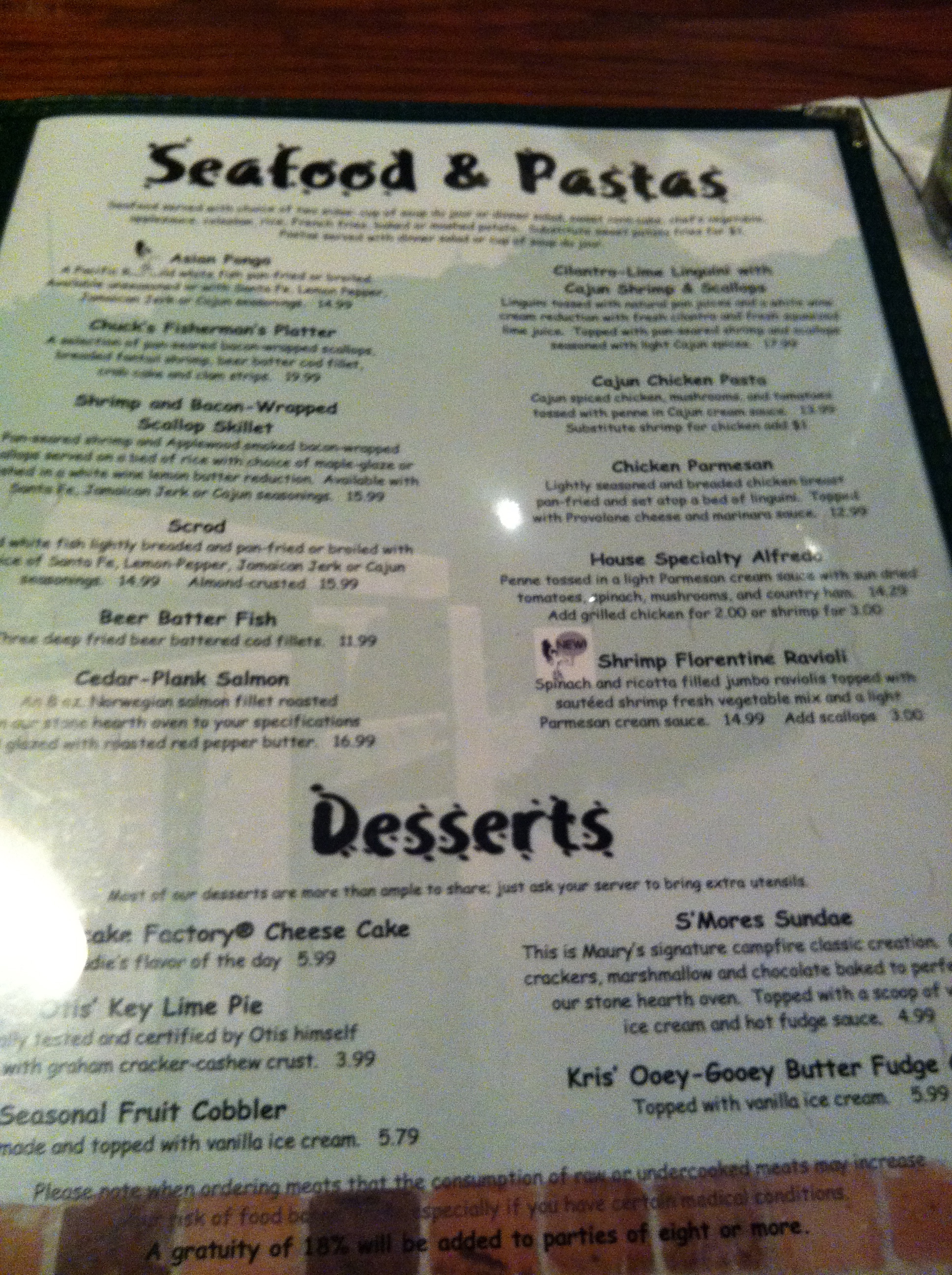 Off to a sweet start, we both perused the menu for a time and decided on seafood for our entrees. Kozmo’s offers a broad selection of seafood dishes that you don’t find on too many local menus.
