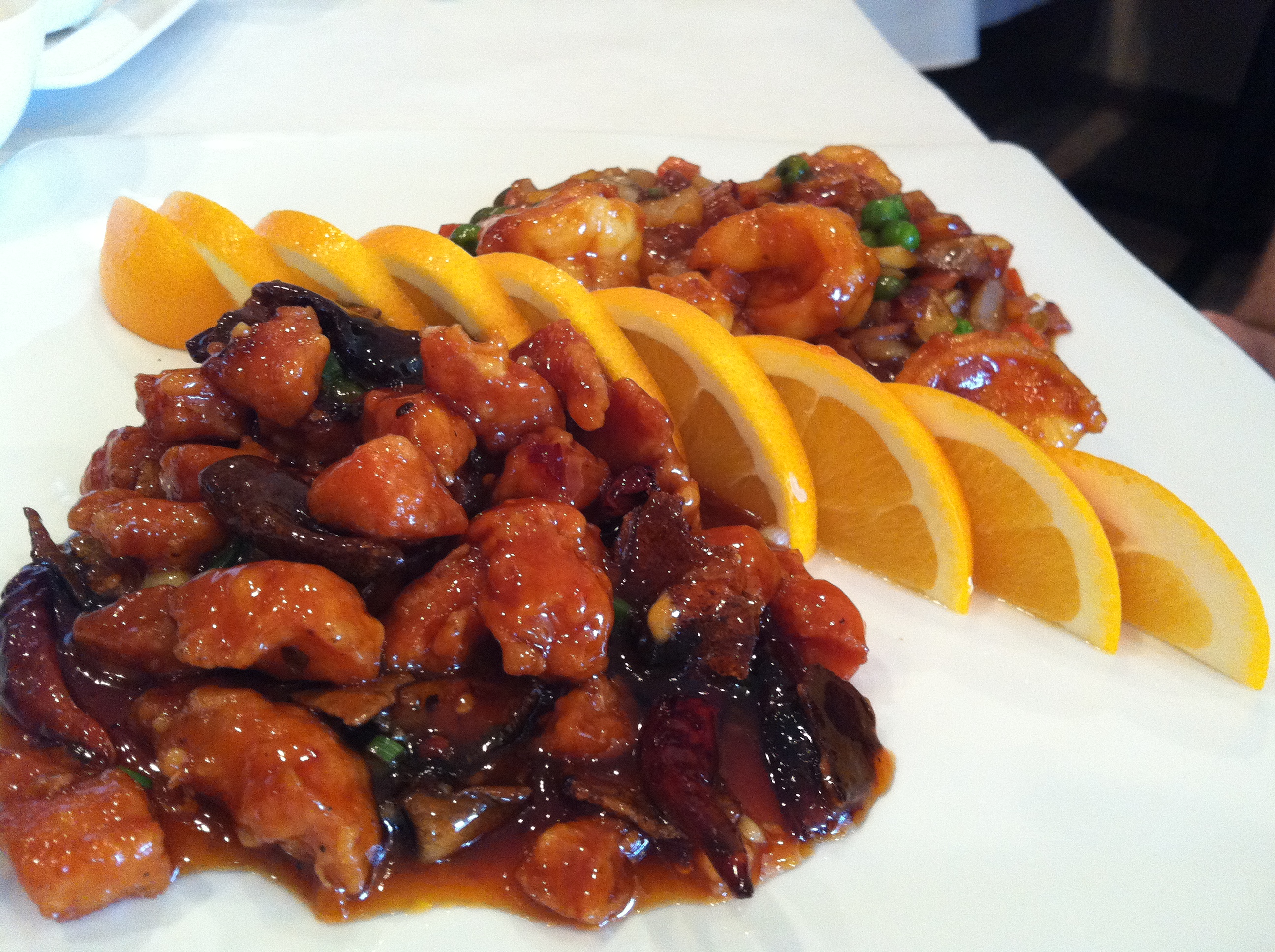 Dave’s gorgeous entree was called “Dragon & Phoenix” and was a combination of orange flavored chicken and spicy shrimp.  This presentation, as with all the dishes, was exceptional – although this was my favorite dish to look at by far.  The sauce was amazing – extremely spicy (to us) but well balanced with the sweet orange.  With all this beauty, it was disappointing to find that some of the smaller pieces of chicken had been fried a bit too long, and were tough as a result.  Apart from that, this dish was fantastic.