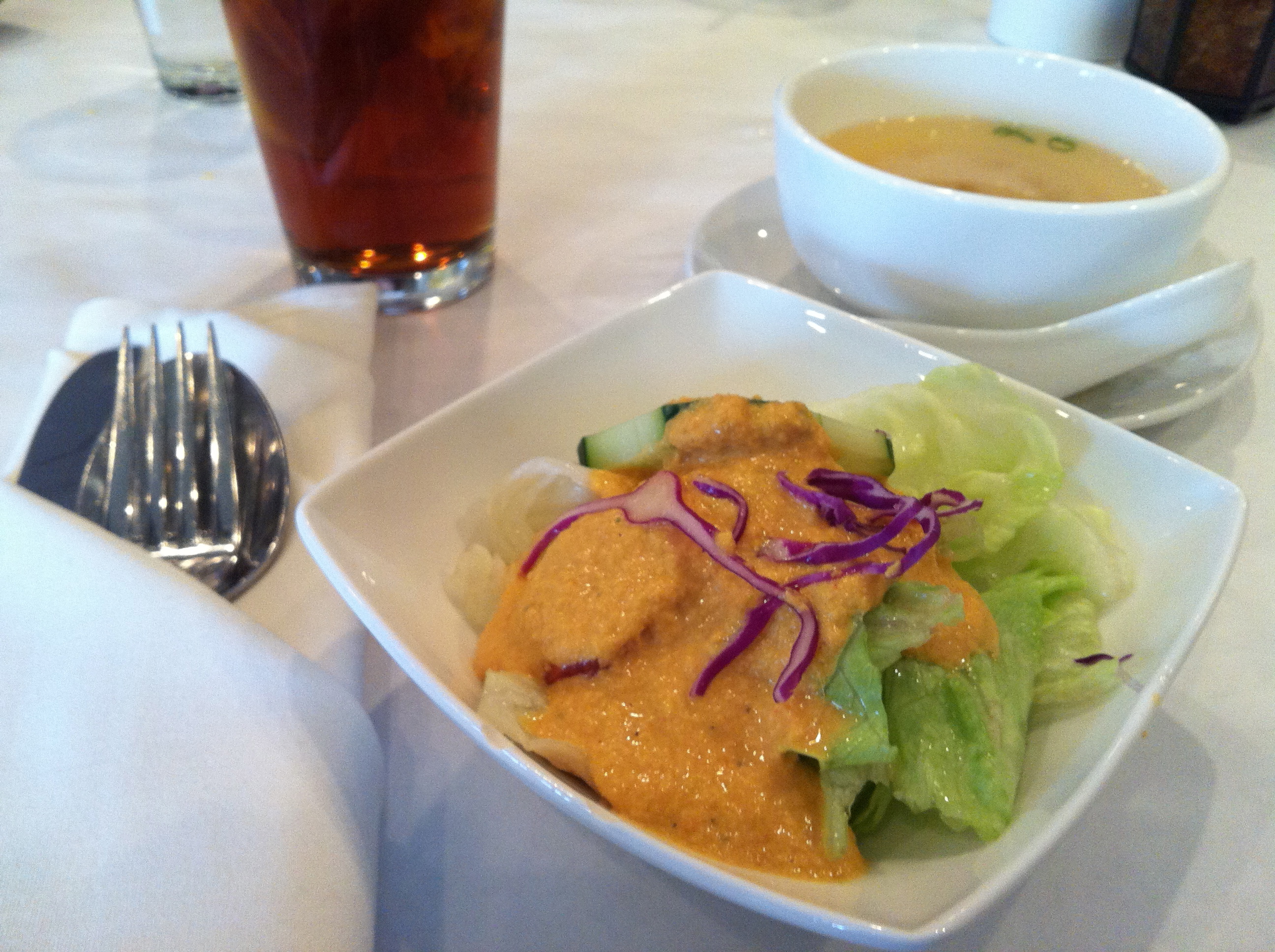 3. We love Jasmine, but find their salad to be a throw away dish. Each time we’ve had it, it has been watery and the ice burg lettuce not very good, browned edges, or the bitter white inside. I would rather get a decent salad or none at all. All of the soups we’ve tried have been very good, but not served hot enough. They originally served their hot tea in small pots which kept it hot. Since they now serve it in pre-poured cups, it also is not hot enough, so we don’t get it anymore. Tea and soup, unless designed to be cold, should be served very hot. This is something that disappoints us about Jasmine. We still love going there, but wish these two issues would be addressed. We have mentioned it to the servers, but it seems to be unimportant to them.