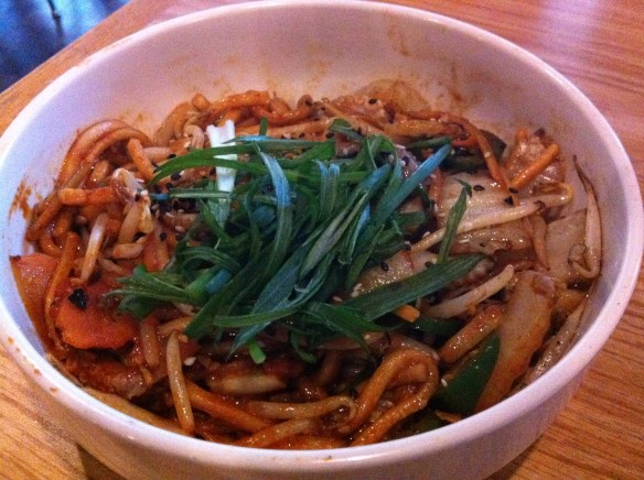 Now.  Onto the noodles.  We opted to try three different noodle dishes (yeah, we’re porkers), mainly because during happy hour, they offer half-sized noodle portions for only $5.  Compared to the normal menu price of $12 for a full-size noodle portion, this is another great deal – so for first timers, happy hour is def the way to go.