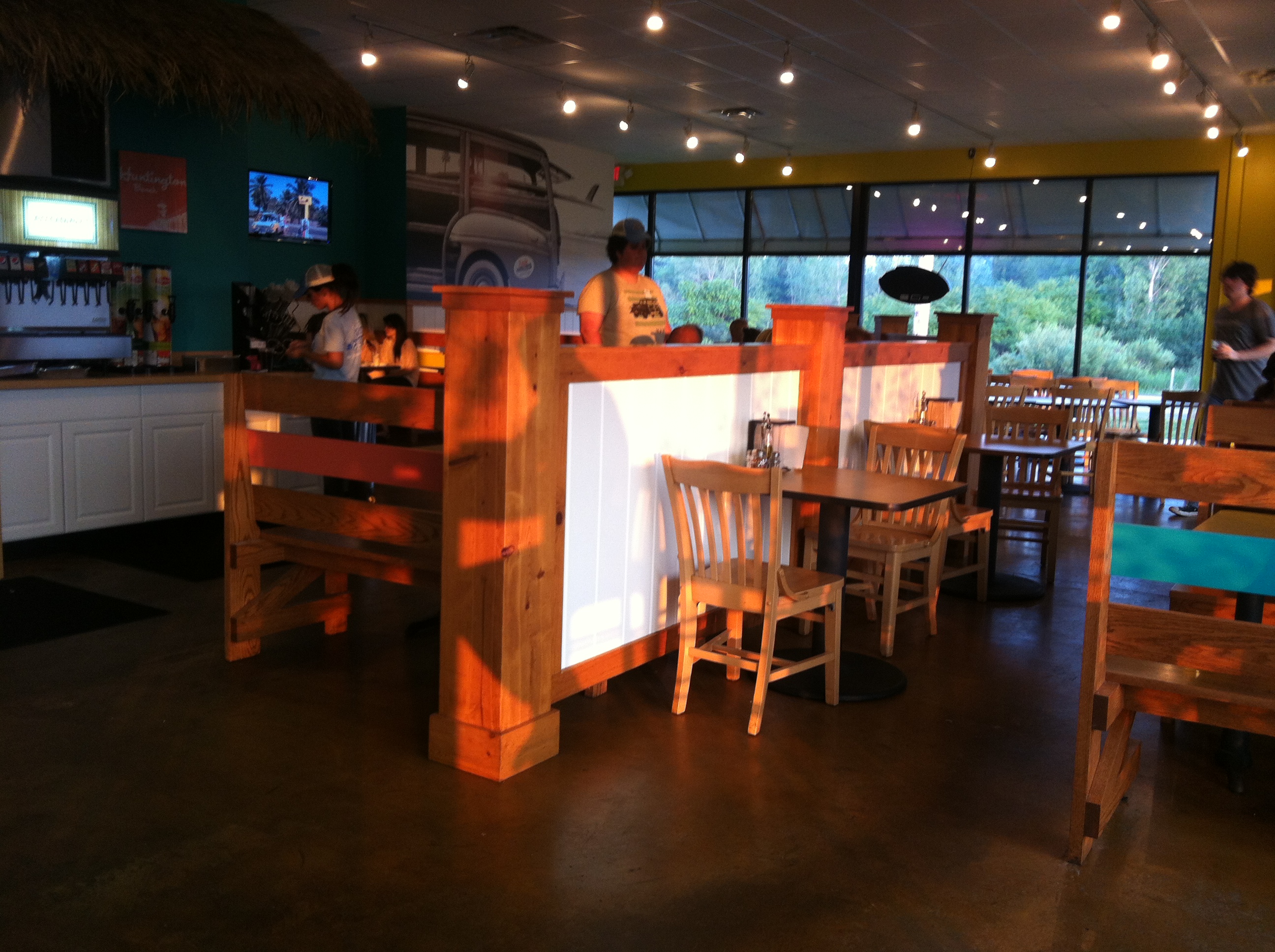 In the blink of an eye, the building that once held Brown Bag Burgers was magically transformed into Baja Pizzafish.  Mind you, this restaurant is on my route to work – it’s right next to Danny Boys and Quaker Steak – so I pass it 2-4 times per day…but I hardly noticed the transition.  Literally, the switch happened that fast.  Opened by the same owners as Old Carolina BBQ, the apparent concept was to bring some West Coast style and healthy cuisine to the midwest.