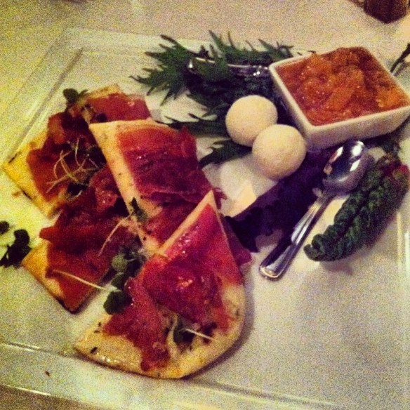 Side-note: don’t you just die for Instagram?! I mean, seriously, how delicious does that look. So we started with an antipasti: grilled flatbread with prosciutto, served with goat cheese and peach jam. Positively scrumptious. Nothing better than savory and sweet harmonizing in one perfect bite.
