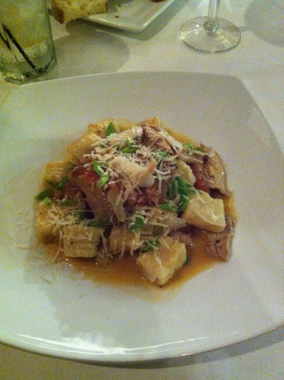 We all must have been in pasta moods; I opted for gnocchi. I just had a feeling it was going to be really good. This homemade gnocchi was served with smoked chicken (pulled dark meat), roasted tomato and garlic, chicken demi, scallions, and of course a healthy dose of freshly grated parm. Wow, this one’s a showstopper people. I am a complete gnocchi fanatic, and Chef Josh hit all the right notes with this dish. You get the richness of the demi, a strong smokey flavor with the chicken, a subtle sweetness with the roasted ripe tomatoes…..then you bite into the lightest, most pillowy gnocci ever made. Thankfully the portion size was enough that I was able to take home a small box, and the leftovers the next day were just as exquisite. If I had one suggestion to improve the dish even more, it would only be to lighten the salt just a smidge……the individual flavors were strong enough on their own not to require it.
