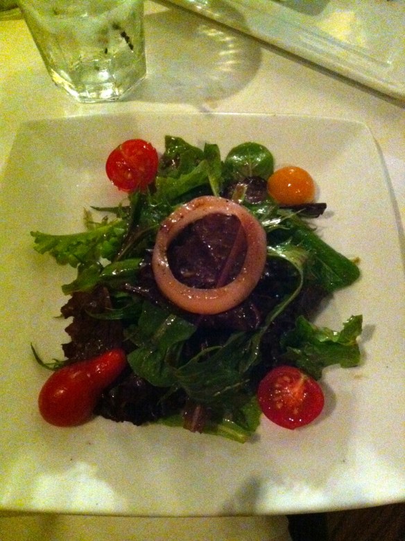 Wow, didn’t we feel important! I confess it was my first experience with sweetbreads. The chef was kind enough to explain the preparation; guess I should have taken notes. What I do remember is that the fig glaze was a delightfully sweet compliment to the intense richness of the sweetbreads. Quite an indulgent treat for a humble foodie like me.