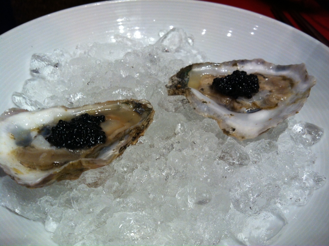 First up, oysters with caviar. This was new. Smooth, easy to eat, tasted like salty ocean.