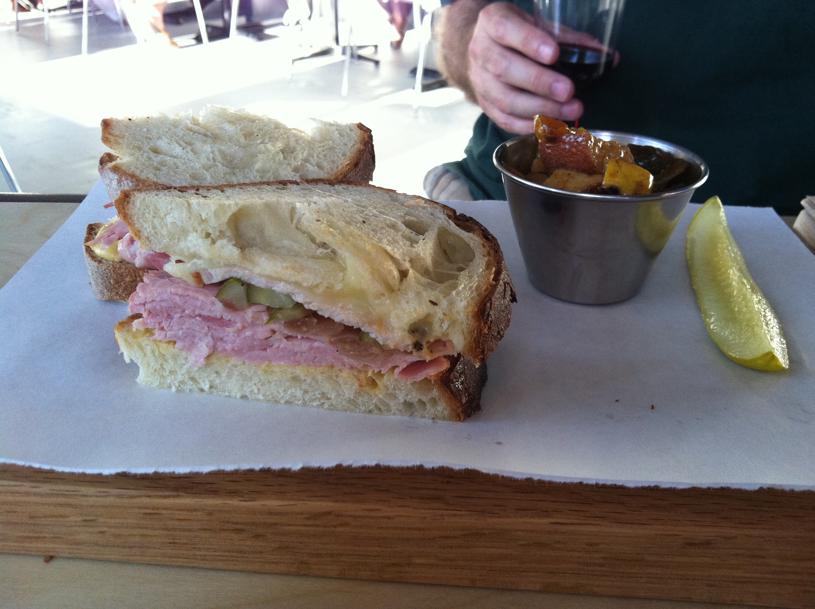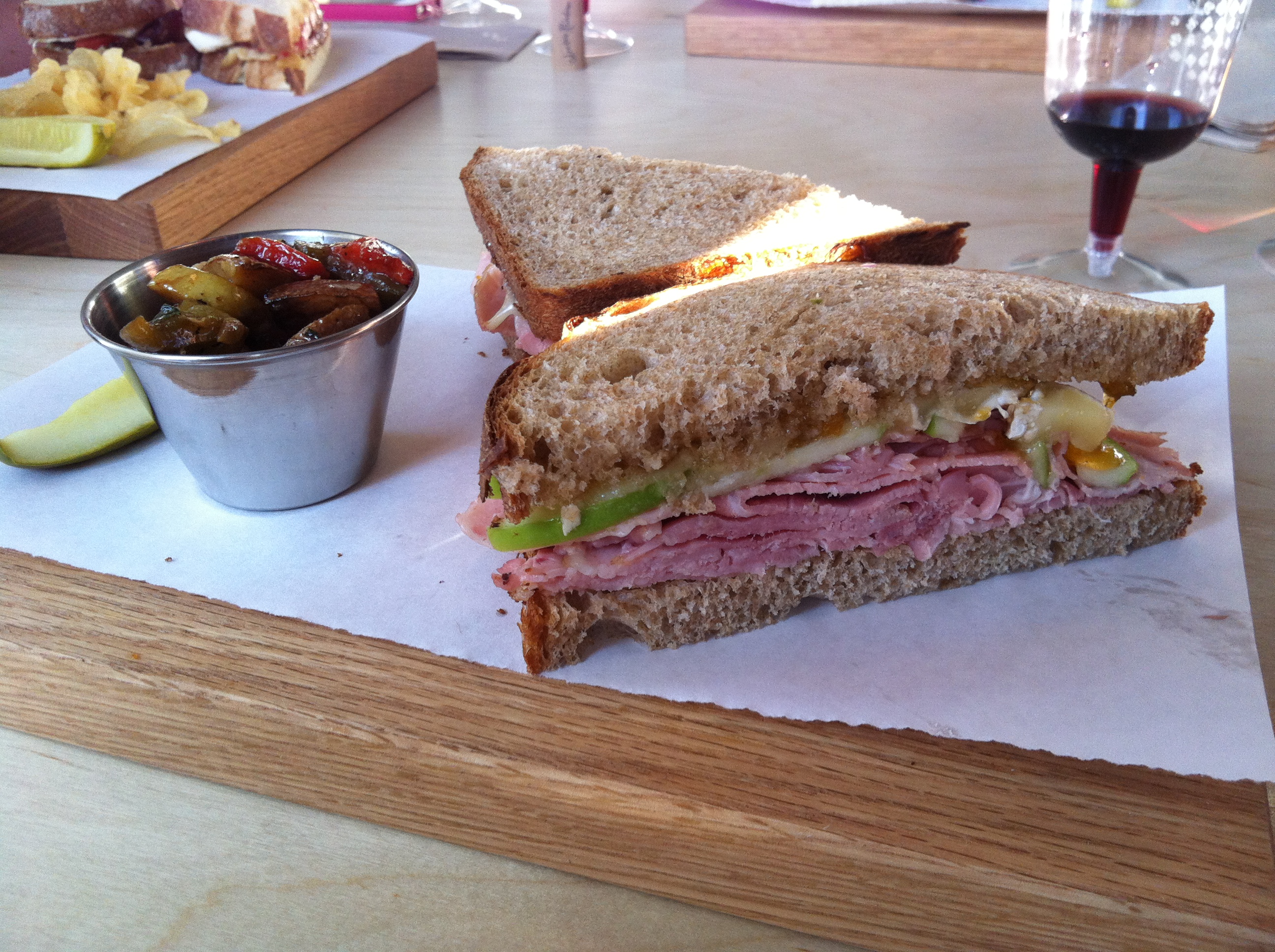 Pictured above is my go-to Deli Ohio creation…..the Ham Apple Brie. Totally whewed by the salty-sweet maple-glazed ham, crisp sour green apple, rich and creamy Brie, and the icing on the cake: peach preserves. All on Hazel Artisan bread, to round out the awesomeness. (Another tangent, this dish totally reminds me of a most delightful antipasti dish on Chef Josh Schory’s summer menu at Lucca….if you missed it, click here.