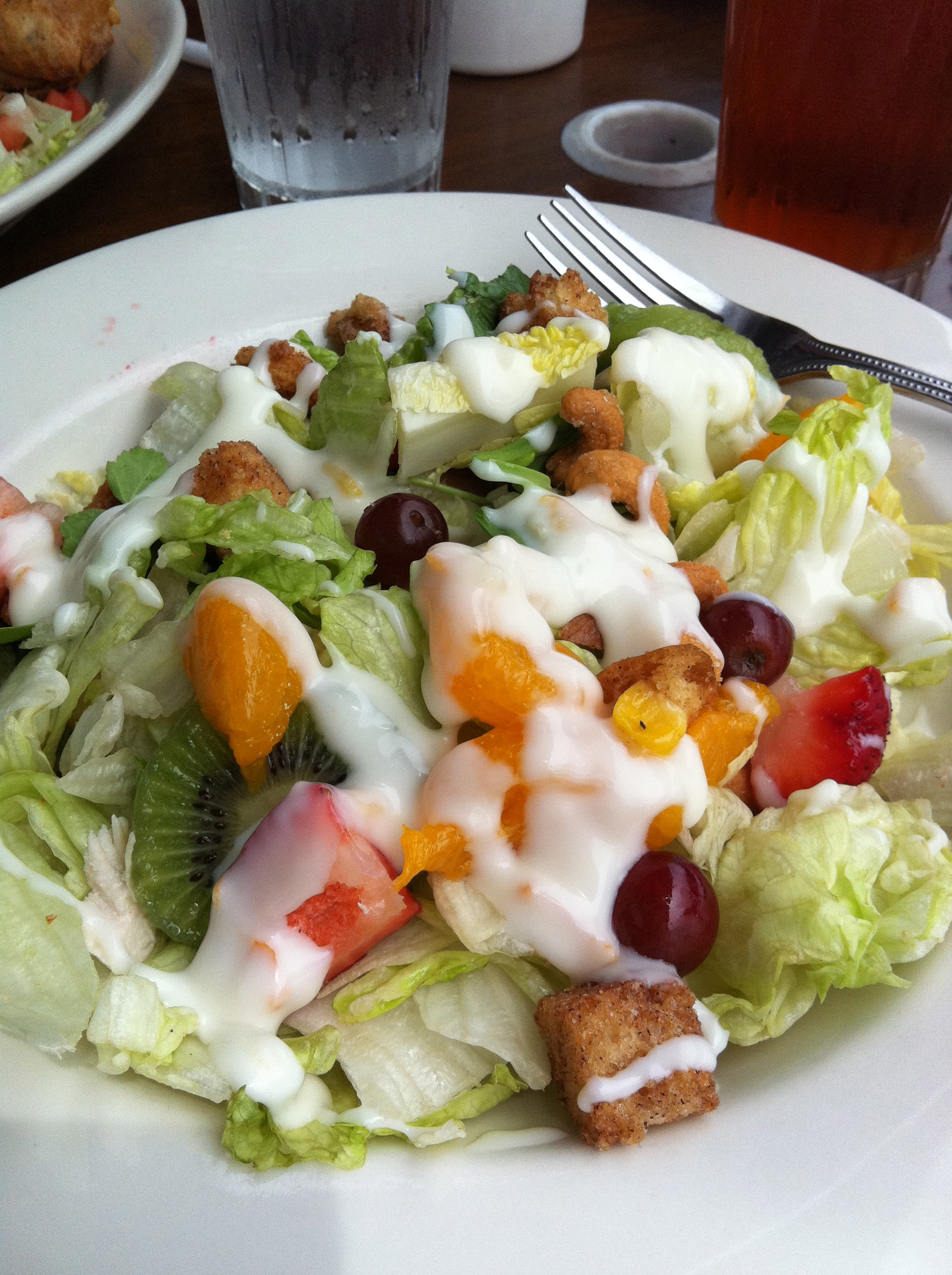 Sometimes it takes a while to discover a perfectly great restaurant that’s right under your nose. Such was the case with Grinders Above and Beyond, a local chain of six family restaurants in Stark County and surrounding areas. While the term “family restaurant” often conjures unpleasant imagery of tired menu offerings, old people, and a general lack of culinary creativity or “scene”, Grinders goes above and beyond all that (ha) and manages to stay pretty cool. This post is centered around the North Canton location, which I find to have a comfortable and visually-interesting dining room, a better-than-average patio, excellent servers, and a bustling crowd pretty much every time I visit. But it wasn’t until last summer at a company luncheon, catered by Grinder’s, when I finally became a fan of their cuisine. It was the Key West salad that sucked me in.